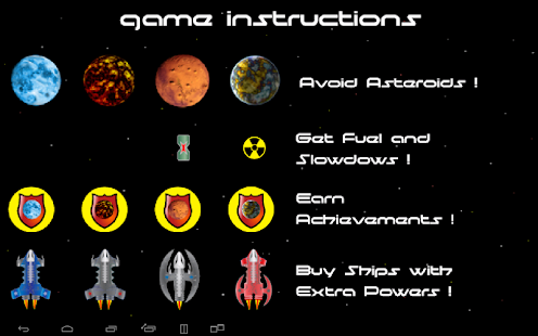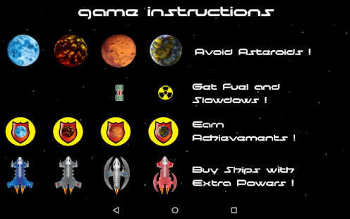 - Different asteroids move with various speeds so be aware and plan your moves in advance.