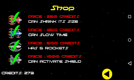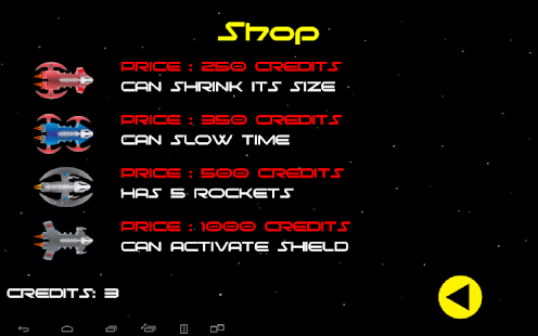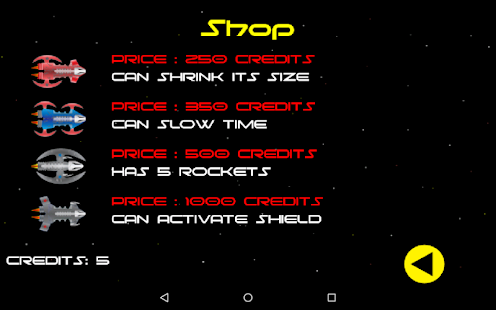 Earn achievements and credits, buy new space ships with special powers and beat you highscore !