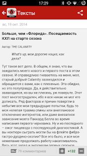• Текстовые трансляции матчей, календарь и таблица КХЛ;