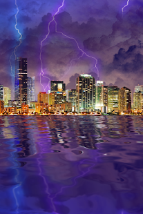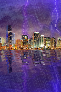 Tapeta má tři pozadí na výběr: Město v noci, noční obloze nad vodou, krásný strom a vodu. V nastavení můžete zapnout déšť, bouřky a déšť zvuky také.