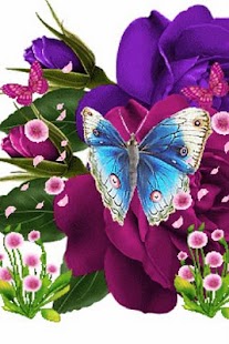 Blue Butterfly On Purple Flowers is a Live Wallpaper.