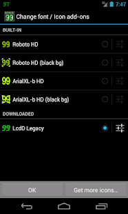 For Android 3.x/4.x users who wish to have the brightest colors possible on their dim status bars, look for our HD add-ons with “b” after the font name. Download HD add-ons within Battery Notifier Pro BT or search for "bnbt" in your browser at Google Play.