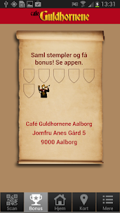 Cafe Guldhornene er en hyggelig bodega, hvor folk mødes til en kold øl og en lille snak. Guldhornenes jordnære stemning afspejles i stedets indretning, der med de rustikke røde mure, dekoreret med fordums billedillustrationer, giver en næsten hjemlig følelse. Som aftenen skrider frem samles byens gladeste folk for at feste på god gammeldags manér og for at få en svingom, til lyden af gamle danske svingere. Aldersgrænse min. 20 år alle dage.