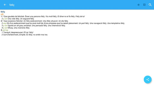 Тhe Diccionari avanc,at de la llengua catalana includes examples of use, conjugation, neologisms, terminology and much more. The Diccionari de sinonims Franquesa d’Enciclopedia Catalana includes antonyms, analog terms, examples and usage notes, definitions and much more. The most practical way to use dictionaries!