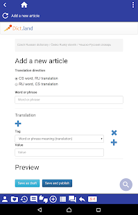 Toto je Česko - Ruský a Rusko - Český slovník. Slovník pracuje offline, vyhledávání je velice rychlé, ale aplikace má online vlastnosti sociálních sítí.