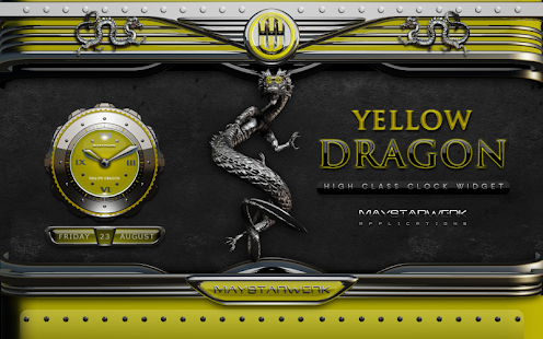 Dragon žluté HQ domovská obrazovka je widget hodiny vyšší třídy a je stanoveno, že náročné majitele smartphone, který vyžaduje kvalitu, přesnost a jedinečný design stylu.
