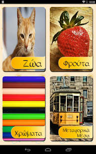 Στις ήδη υπάρχουσες κατηγορίες υπάρχουν ζώα, φρούτα, χρώματα και μεταφορικά μέσα.