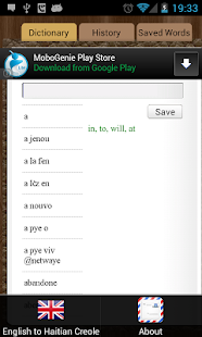 With nearly 3700 English to Haitian Creole and nearly 38000 Haitian Creole to English words, this is the most sufficient free English Haitian Creole and Haitian Creole English offline dictionary for android with words updated regularly in term of quantity of words and their meaning.