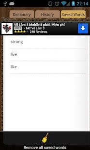 Program has attractive interface, easy to use with function of automatically saving 150 newest words (History), and allows you to save and delete your saved words (Saved words).