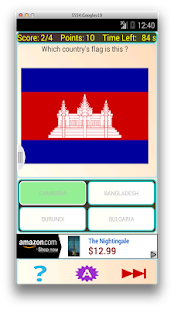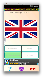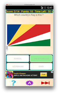 This is a fun and challenging app to learn about the flags of all the countries around the world, in a Quiz format. The Quizmaster shows you the image of flag and you have to choose the correct answer from the choices presented. You get points for each correct answer. You can also ask for clues, but that costs you points you can earn. Compete with your friends and see who scores the most !