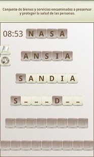 Puzle de letras, palabras en cadena, juego de preguntas y respuestas en español.