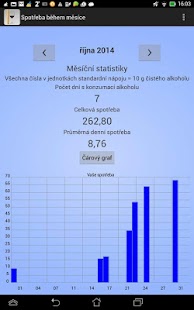 Můžete sledovat svůj denní konzumaci alkoholu, získané z minulých záznamů a statistik přezkumu, jako jsou celkové a průměrné spotřeby.
