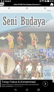 BSE (Buku Sekolah Elektronik) Seni Budaya Semester 2 Untuk Tingkat SMP / MTS Kelas 8 adalah modul materi bahan Buku teks pelajaran ini merupakan buku pelajaran yang yang telah dilakukan penilaian oleh Badan Standar Nasional Pendidikan dan telah ditetapkan sebagai buku teks pelajaran yang memenuhi persyaratan kelayakan yang dapat digunakan sebagai pedoman pembelajaran. Buku sekolah digital yang disediakan oleh pemerintah, Memuat pengetahuan umum tentang mata pelajaran, soal ujian, ujian sekolah dasar diantaranya latihan ulangan harian, mingguan, semester dan tengah semester, akhir semester dan kenaikan kelas.