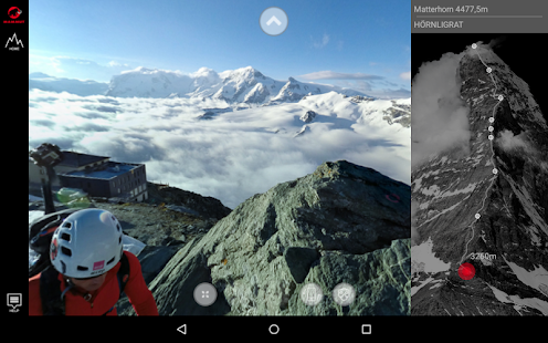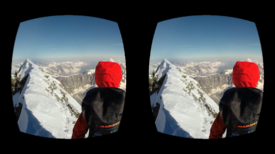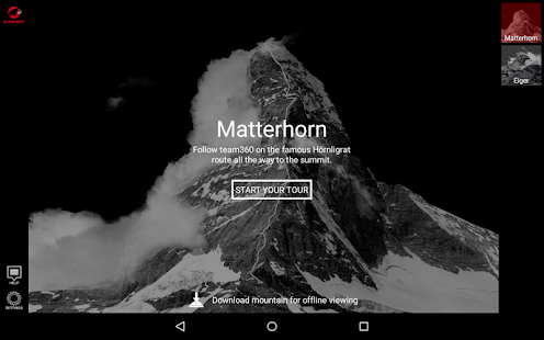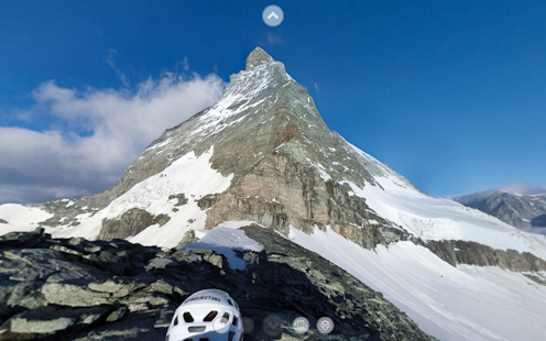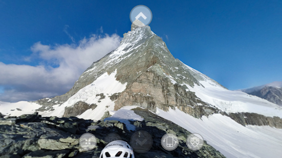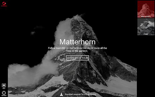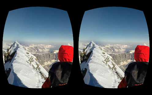 With a head-mounted device (e.g., Google Cardboard, Zeiss VR One, Homido or others) the virtual reality of the images allows you to experience the ascent of the famous and bold Eiger North Face or the Matterhorn in the thick of it.