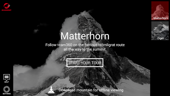 Developed by the Swiss alpine sports brand specialist Mammut, the App #project360 makes it possible to experience the magnificent atmosphere of classic ridges, glaciers and steep faces with your smartphone or tablet – all in realistic 360° panorama pictures and videos. Be part of the rope team of our Mammut Pro Team athletes and mountain guides and take on the challenge of the exposed ridges of the Matterhorn or the steep flanks of the Eiger North Face.
