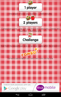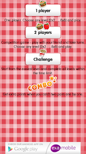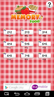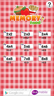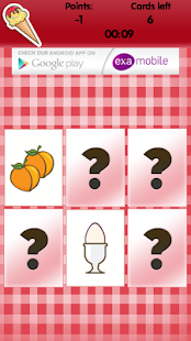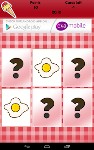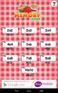 The game provide you at any level of an attractive play. Player can gain bonuses to compete for points, with time or other players. The current version of the game shows the cards of different kind of food. Examobile offer also other editions of memo games with the different graphics motives (animals, fruits, flags, vegetables, sports, football clubs and a lot of others).