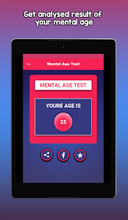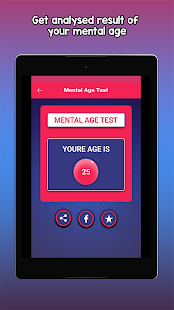 Mental age test will let you know about your mental age. test your mental age. have you ever asked yourself about your age like ' what is your mental age? '. you can find out your age. have you ever wondered what you age might have been. well now this what is your age game can find out your age. in this brain age test free you need to give answer of some question. age testing will be answered. you will immediately get the results about age. share your result with your friends and family and also share you result to social media network.