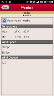 ✔ Weather info like raining status, temperature min, max in degrees and foreign heat and wind speed details.