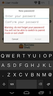Business Shell - umožňuje spouštět pouze povolené aplikace na vašem telefonu nebo tabletu. Stavět bezpečné zóny na vašem zařízení.