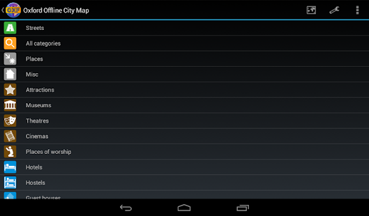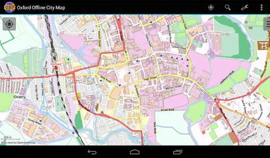 Aplikace poskytuje offline mapu Oxford využívající populárního projektu Openstreetmap. Po instalaci není nutné internetové připojení ani pro procházení mapou ani pro vyhledávání.
