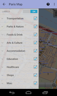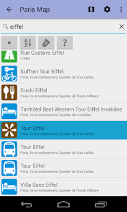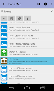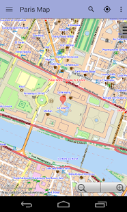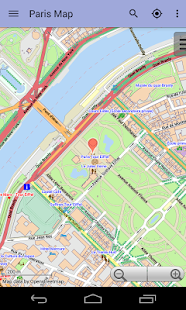 Aplikace poskytuje offline mapu Paříž využívající populárního projektu Openstreetmap. Po instalaci není nutné internetové připojení ani pro procházení mapou ani pro vyhledávání.