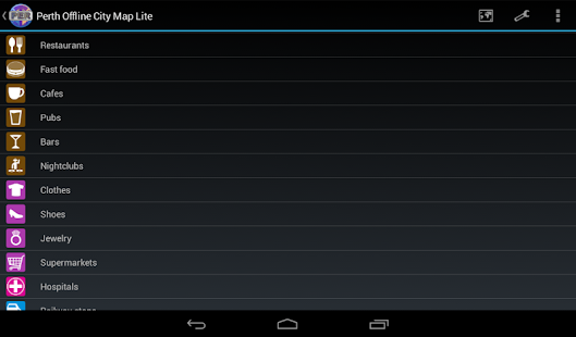 Aplikace poskytuje offline mapu Perth využívající populárního projektu Openstreetmap. Po instalaci není nutné internetové připojení ani pro procházení mapou ani pro vyhledávání.