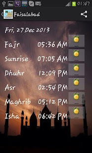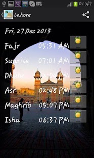This app provides daily prayer timings for Pakistan along with prayer reminders/alarms and facebook/twitter sharing.