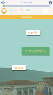 • The Collector Game: As Spanish words fall from the top of the screen, you select the ones that belong to the category before they disappear. The game speeds up as you advance, providing an exciting and challenging test of your Spanish skills.