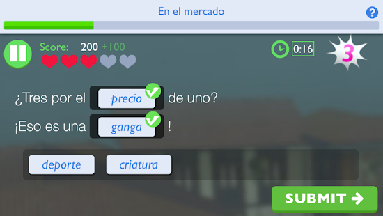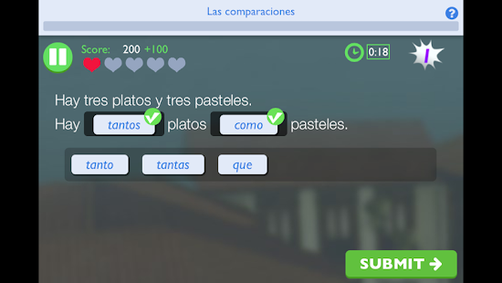 Whether you’re dragging and dropping words into a logical order, selecting falling words in a category, or labeling images, your goal is to earn as many points as possible in the limited time available. You will learn and improve your Spanish language skills as you go!