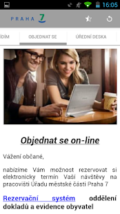Naleznete zde aktuality, pozvánky na akce, důležité informace k vyřizování vašeho požadavku, rezervační systém návštěv Úřadu MČ Praha 7, úřední desku a samozřejmě také kontakty na jednotlivé odbory. Věříme a doufáme, že Vám tato aplikace usnadní a zrychlí přístup k informacím.