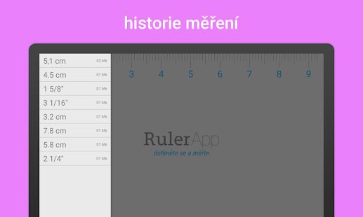 Aplikace Pravítko pro váš telefon a tablet. Změří vše pomocí krásného pravítka na obrazovce. Máte na výběr mezi palci a centimetry. Klepnutím na obrazovku spusťte ten nejlepší vícedotykový měřicí systém a zjistěte velikost všech zajímavých předmětů kolem sebe.