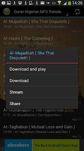 This App is your unique mobile source for high quality MP3 translations of the meanings of the Qur'an in Nigerian, Hausa and Yoruba.
