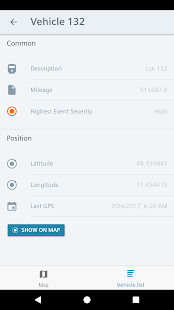 Siemens Mobility Smart Monitoring Mobile App allows you to monitor the status of your fleet on your Siemens vehicles. A map gives you the current GPS position of the vehicle. You can select a single vehicle to get information about mileage and status.