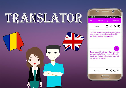 * Romanian To English Translator And English To Romanian Translation is the most powerful translation tool on your android. translate any sentence or phrase into any destination language, and enjoy a set of useful add-on features such as text-to-speech, and integrated social media support.