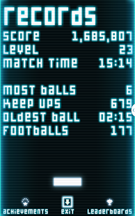* 6 Leaderboards including highest score, highest level, oldest ball and greatest hits.