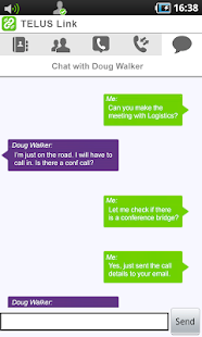• Get real time presence indicating contact availability, plus in-application contact and group messaging