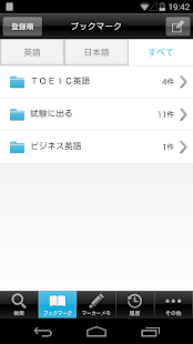 ブックマークでは、覚えたい単語をフォルダ分けして登録しておけば自分だけの英単語帳が出来上がり。