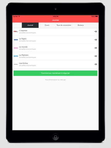 Actualité économique propose différentes sources d’information synchronisées en temps réel dans l’application. Dans cette application vous pouvez choisir entre: Le Monde économie, L’Express économie et Le Figaro économie. Toutes ces sources d’information vous permettent d’être tout le temps informé des dernières nouvelles boursières.