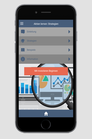 In diesem kostenlosen Programm können Sie sowohl ihr Smartphone oder Tablet verwenden um in nur wenigen Minuten alles zu online Investition und Finanz Strategien zu lernen. Nach Abschluss des Kurses “Aktien Lernen: Strategien” können Sie anfangen mit Aktien, Forex oder Rohstoffen zu spekulieren. In diesem Kurs können Sie selbst entscheiden wann Sie mir dem Kurs fortfahren wollen. Wir haben diese App “Aktien Lernen: Strategien” erstellt um sicher zu stellen, dass Sie immer eine Zusammenfassung der wichtigsten Finanzstrategien zur Hand haben. Dieser Kurs “Aktien Lernen: Strategien” ist besonders gut für diejenigen geeignet die mit dem Investieren beginnen wollen, aber sich noch nicht sicher sind was für eine Strategie Sie für das online Spekulieren anwenden wollen.