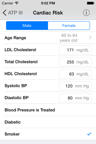 You input your patients' data - lipid panel by numbers and risk factors by simply tapping to select. Input is beautiful and easy, using the popular interface from MediMath.
