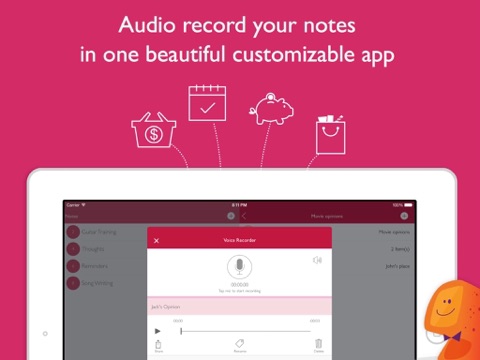 Capture your thoughts in audio and record voice notes in a beautiful easy to use app that can be fully customized to match your exact needs.