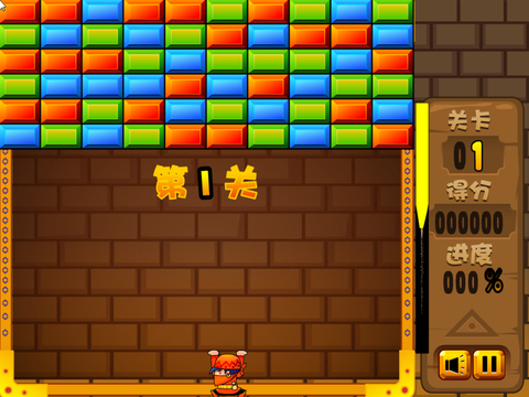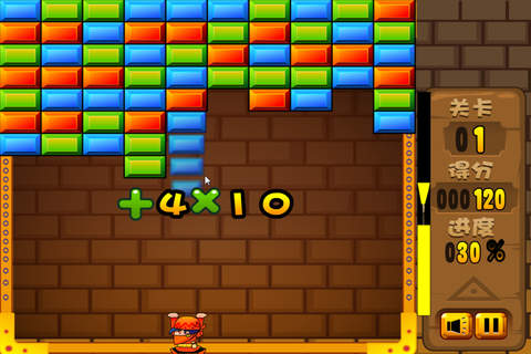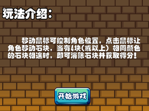 一款五彩斑斓的宝石砖块消消看,玩家可以控制角色位置,点击让角色移动石块,4块以上相同颜色的石块相连即可消除,喜欢的朋友快来挑战吧!