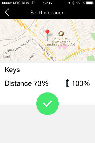 Beacon Tracker designed to track your belongings, which you afraid to forget or lost. App will notifies you on time that thing attached to iBeacon sticker exited visibility zone and probably you've forgotten your belonging. By the way, app updates iBeacon sticker coordinates all the time, so if your stuff was lost you will easily known where it happened.