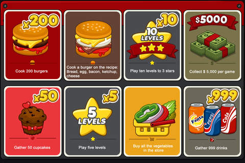 Also in the game "Burger Cafe" you can collect cards with various achievements! After completing the desired task you get a collection card to achieve. Hurry to collect all the cards!