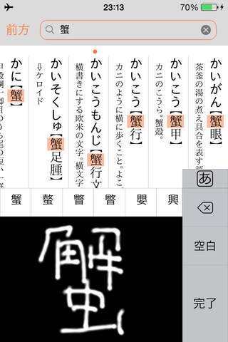 目的の言葉まで、タップとスライドだけで辿りつけます。見出し語一覧を眺めながら気になる言葉を探せます。