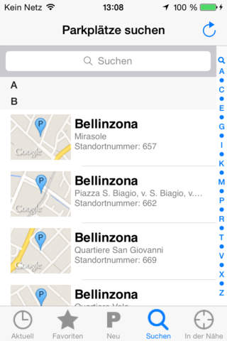 - Liste der zuletzt genutzen Parkplätze/Favoriten