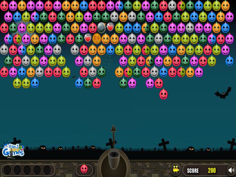 玩家可以不断的发射各种颜色的南瓜,让三个以上颜色相同的连在一起消除掉,消除所有的南瓜 就能过关,喜欢泡泡龙游戏的朋友快来玩玩吧。