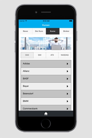„Finanznachrichten“ ermöglicht es Ihnen, verschiedene Börsenkurse zu verfolgen. Es stehen 4 Asset Klassen zu Verfügung: DAX, NASDAQ, SMI und ATX. Die Aktienkurse sind alle in der „Finanznachrichten“ App integriert. In unserer App „Finanznachrichten“ ist es auch möglich finanzielle Newsberichte von verschiedenen Quellen zu lesen. Wir bietet Ihnen verschiedene Nachrichtenquellen an, die in der App in Echtzeit synchronisiert werden. Sie können selbst die Newsquellen, unter anderem Die Welt, Der Spiegel, Die Zeit und Stern, auswählen. Diese beinhalten unter anderem aktuelle Nachrichten zur Deutsche Börse, Börse Frankfurt, und Börse Stuttgart.