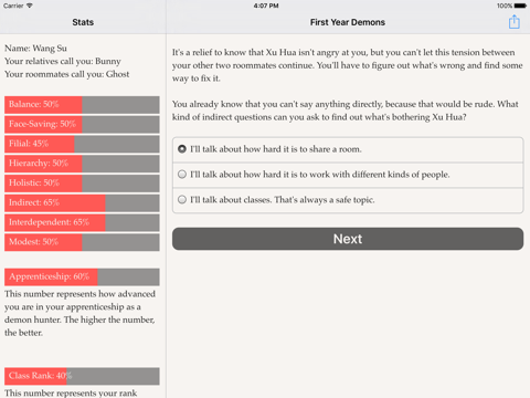 As the youngest member of a family with a secret and ancient duty to keep China safe from demons, you must balance your relatives' traditional values and expectations with the challenges of your first year at college and your secret study of potions, sword, and spells.