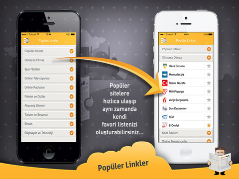 Genel başlıklarla uygulamada bulabilecekleriniz: Hava durumu, resmi gazete, vergi sorgulama, son depremler, Merkez Bankası kuru, askerlik yoklaması, karayolları durumu, spor kulüpleri, online televizyonlar, online radyolar, alışveriş siteleri, turizm ve seyahat linkleri, emlak, dizi izleme siteleri, teknoloji ve bilim haberleri, ekonomi portalları ve bankalar, popüler dergi ve medya kuruluşları, oyun portalları.